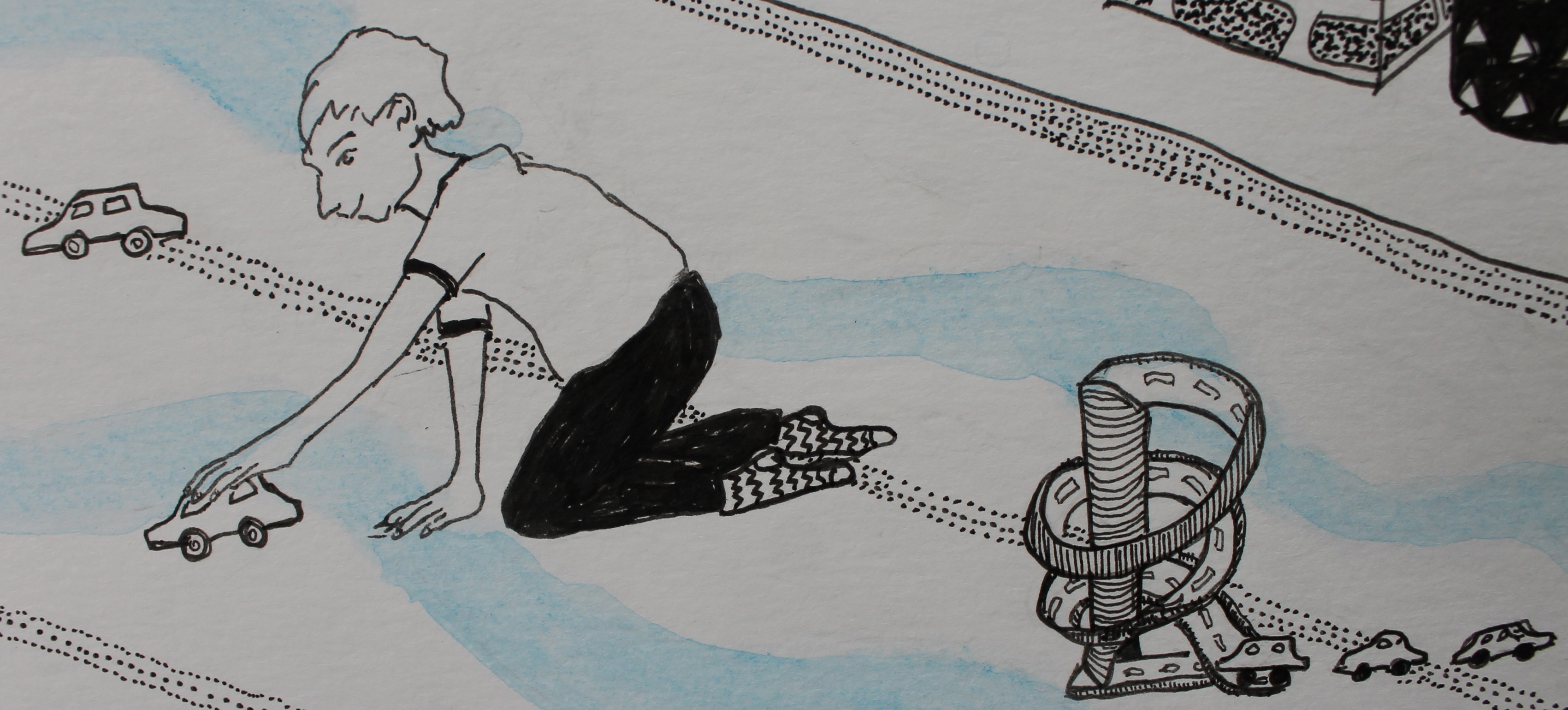 Nana’s son playing cars,