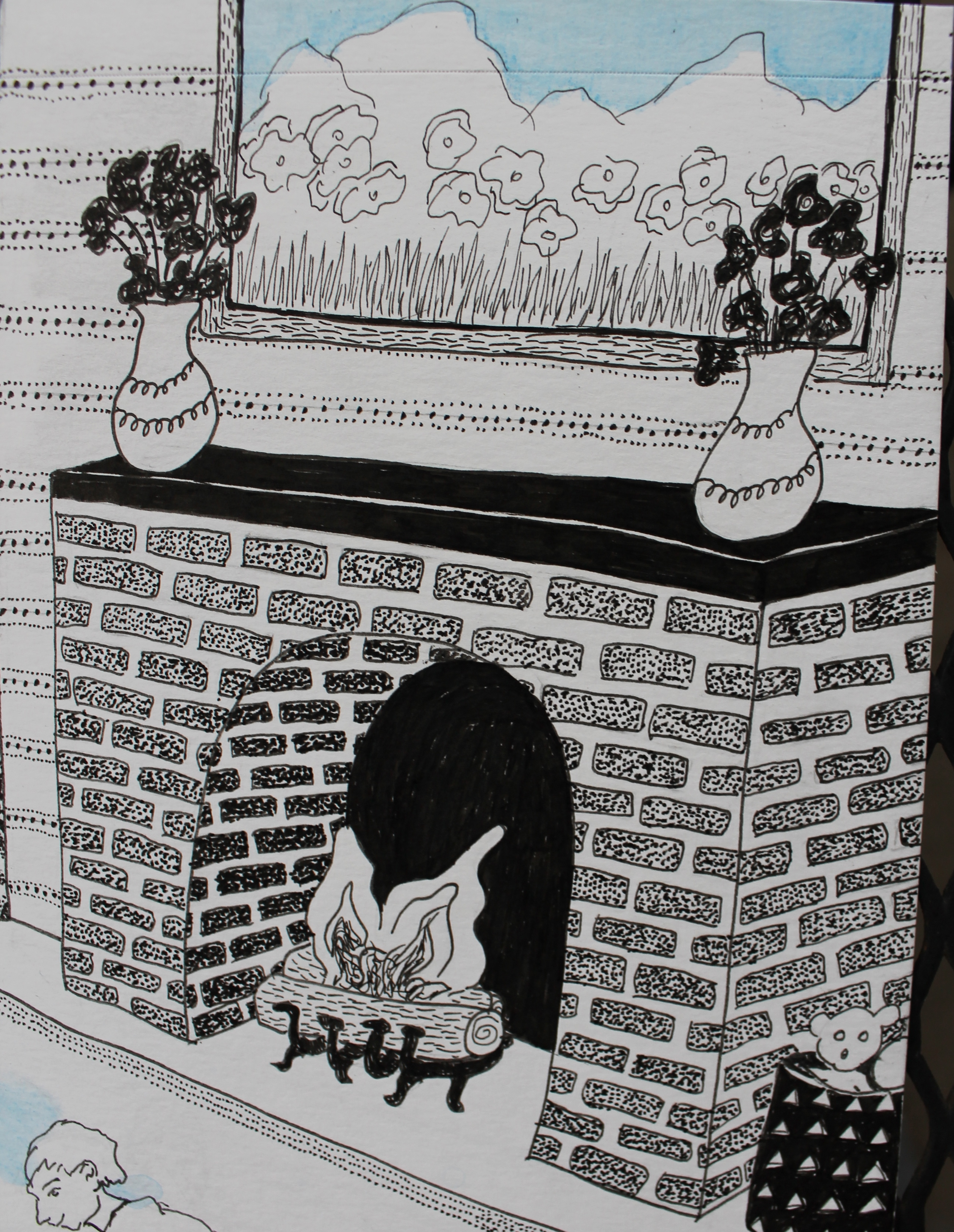 the fireplace,
