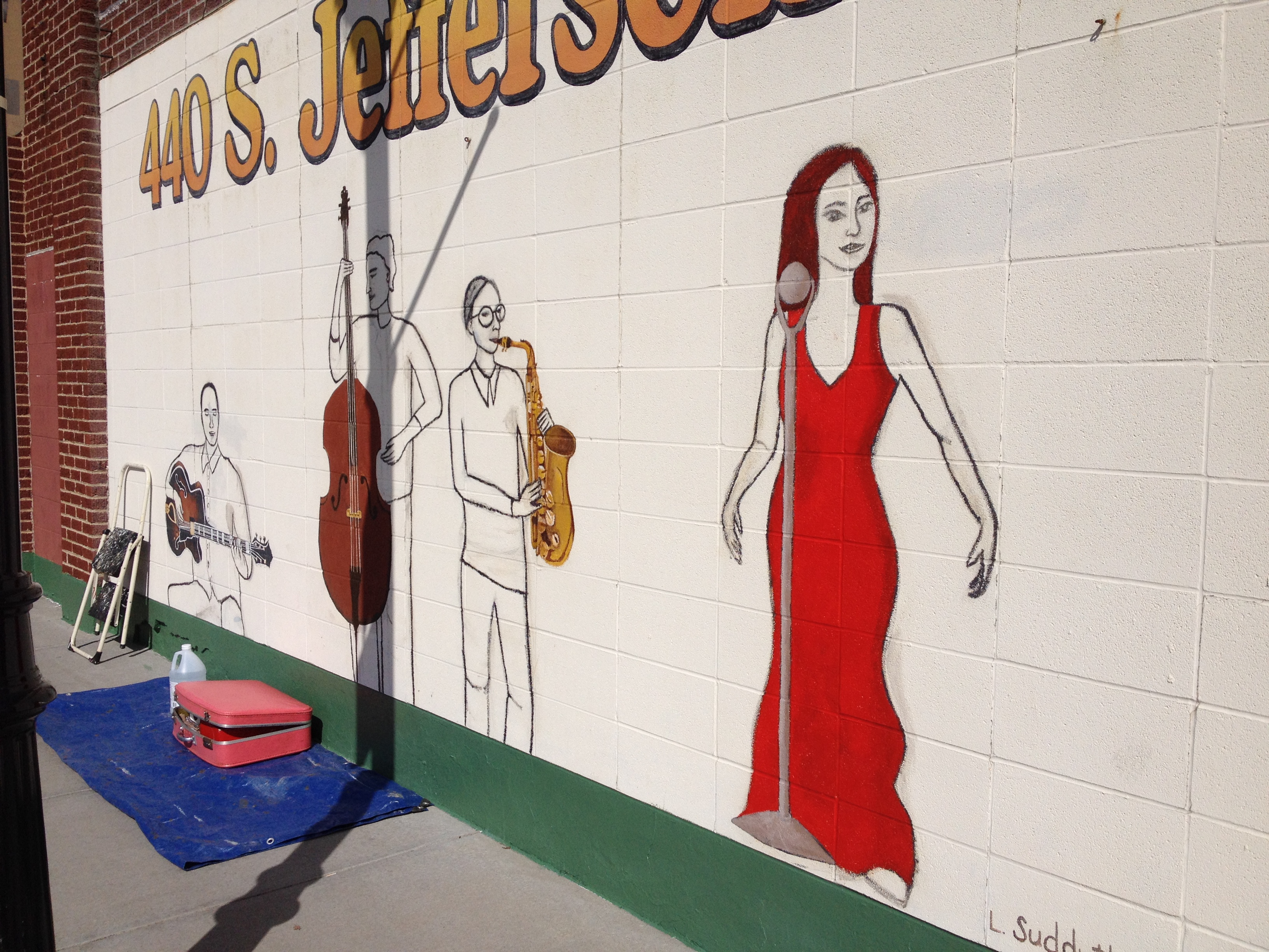 M and our daughter E would go with me most days and sometimes my friend Lacy from Gallery Gal would also meet me because she was painting the Lord’s Prayer on another wall. It took me about three months to complete (going about three times a week for roughly one hour each session).