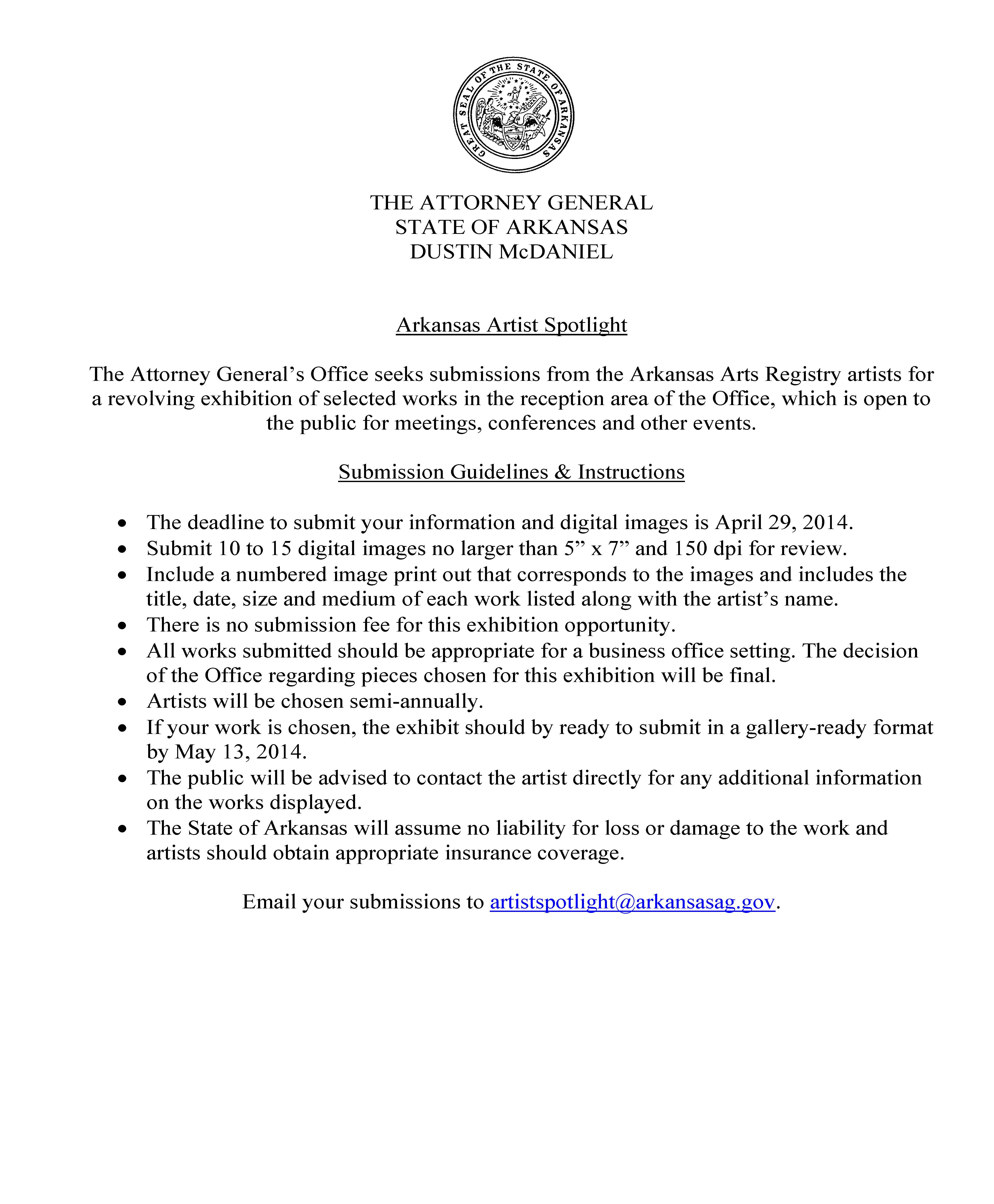 I am a member of the Arkansas Artist Registry, and so I get emails of opportunities to show, sell, to apply for grants and fellowship, and other artist things. The Arkansas Arts Council sent a call for submission: “The Arkansas Attorney General’s Office seeks submissions from the Arkansas Artist Registry artists for a revolving exhibition of selected works in the reception area of the Office, which is open to the public for meetings, conferences and other events.”  and this attachment