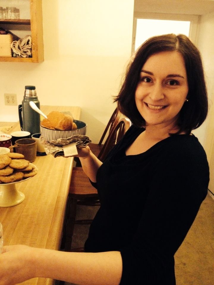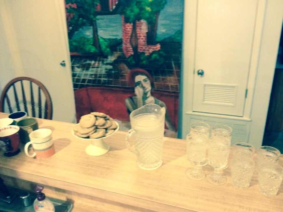 Some topics of the night: Harry Potter, Enneagram and other personality types, Cobra basket, working with felt, the creative process, Ein loving who she is, cookie display, turning drawings into a coloring book, potential group names (BYOA – bring your own art, Running with Scissors, Art Paper Scissors), and best most recent purchases (a bunny door stop, Moonrise Kingdom,  Breyers Chocolate Oreo Ice Cream, A ticket to Seattle, Clearance Cookies – with Belgium chocolate – at Walgreens).