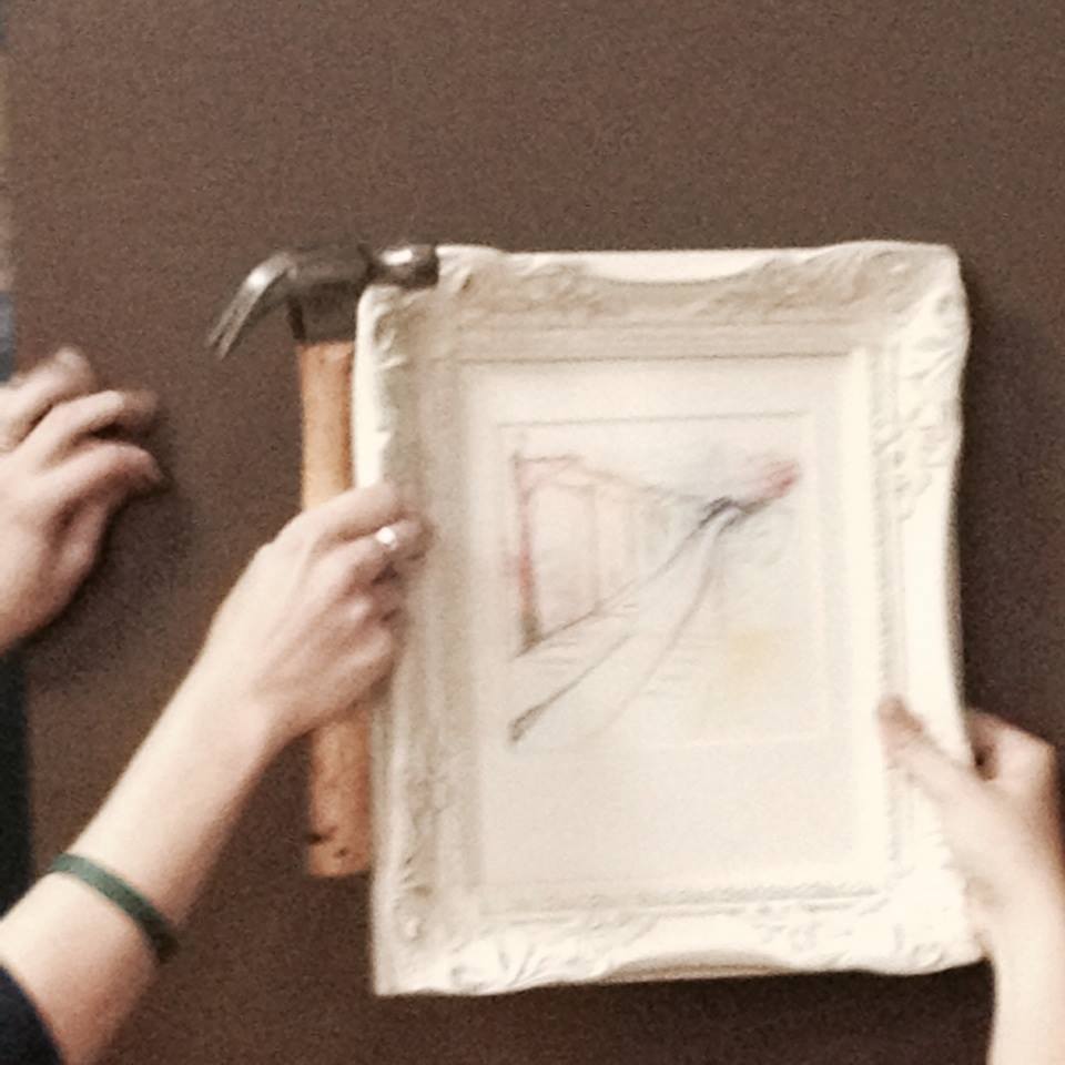 We pulled out the hammer and nails and just eyeballed it. We didn’t use a tape measure or a level…basically a big “hanging art no no.” Why didn’t we call Ephraim!