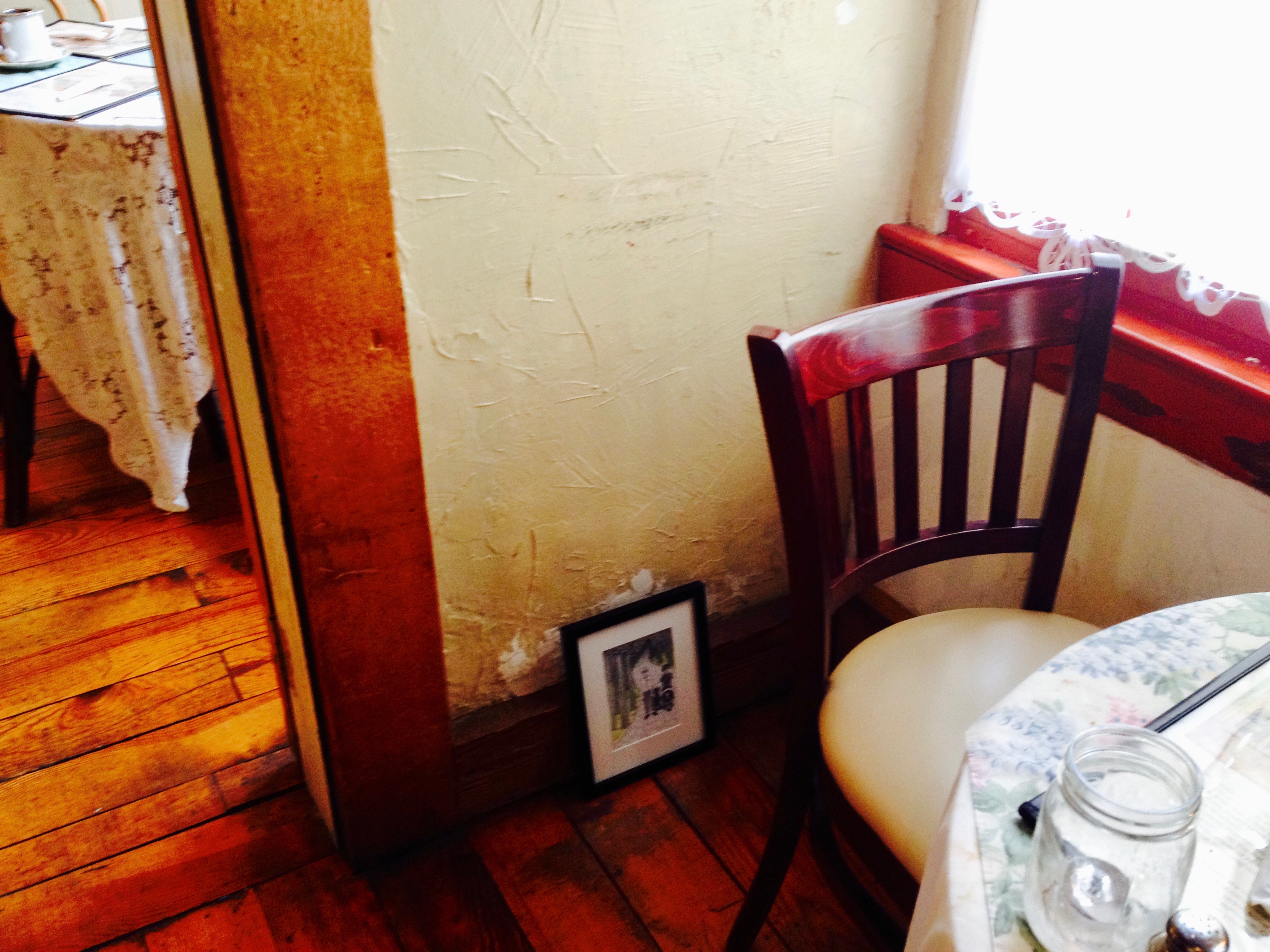 I ended up taking my kid with me to hang the show, so I wasn’t sure how that would go, but it ended up working out! Tea Bar and Bites gave me a cup of tea “on the house” – a Georgia Peach – while I set up the show.