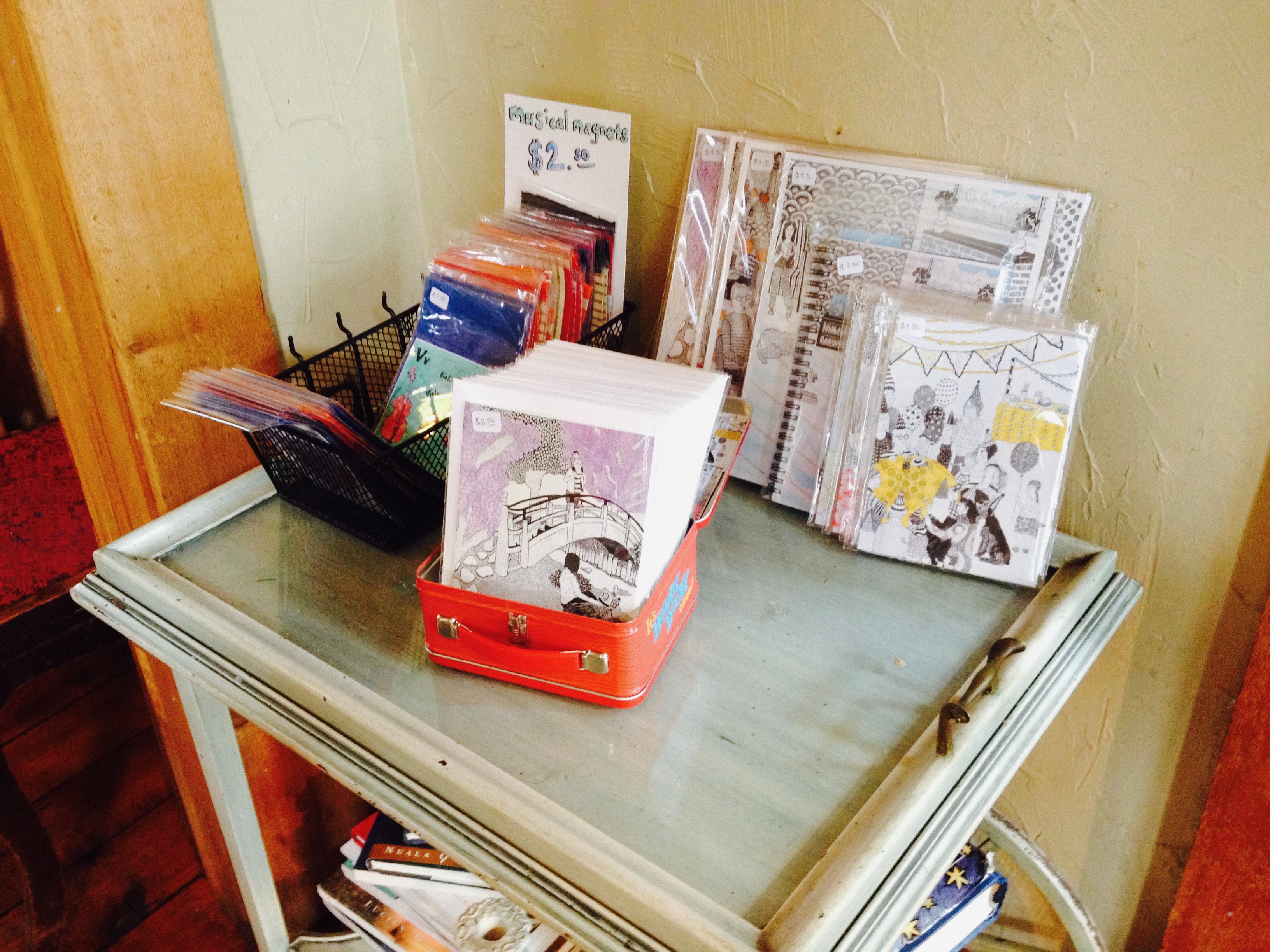 I went and photographed and measured the space months before the show. The space is limited, so I had to make a decision. Either I could hang about 10 of the pieces or I could make small art prints and hang all of the work. I decided to go with the latter decision because I think not only should the entire series be displayed together, but by putting up the smaller prints I could charge way less – should anyone want to leave with some of my art. I also created some cards, art prints, and musical magnets to sell.