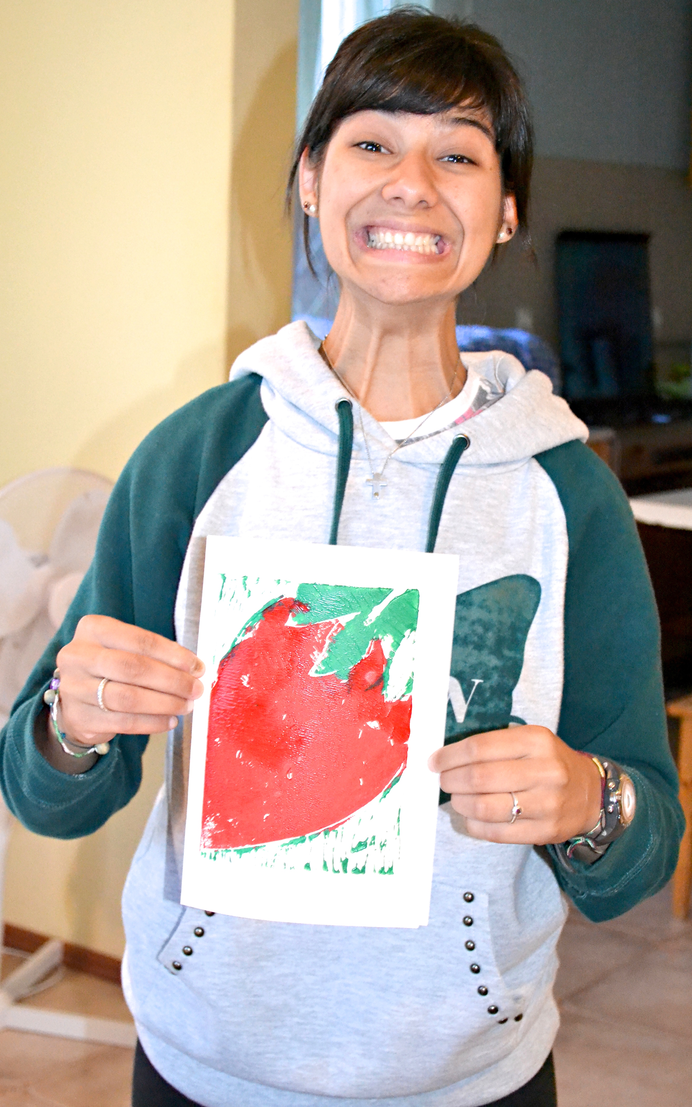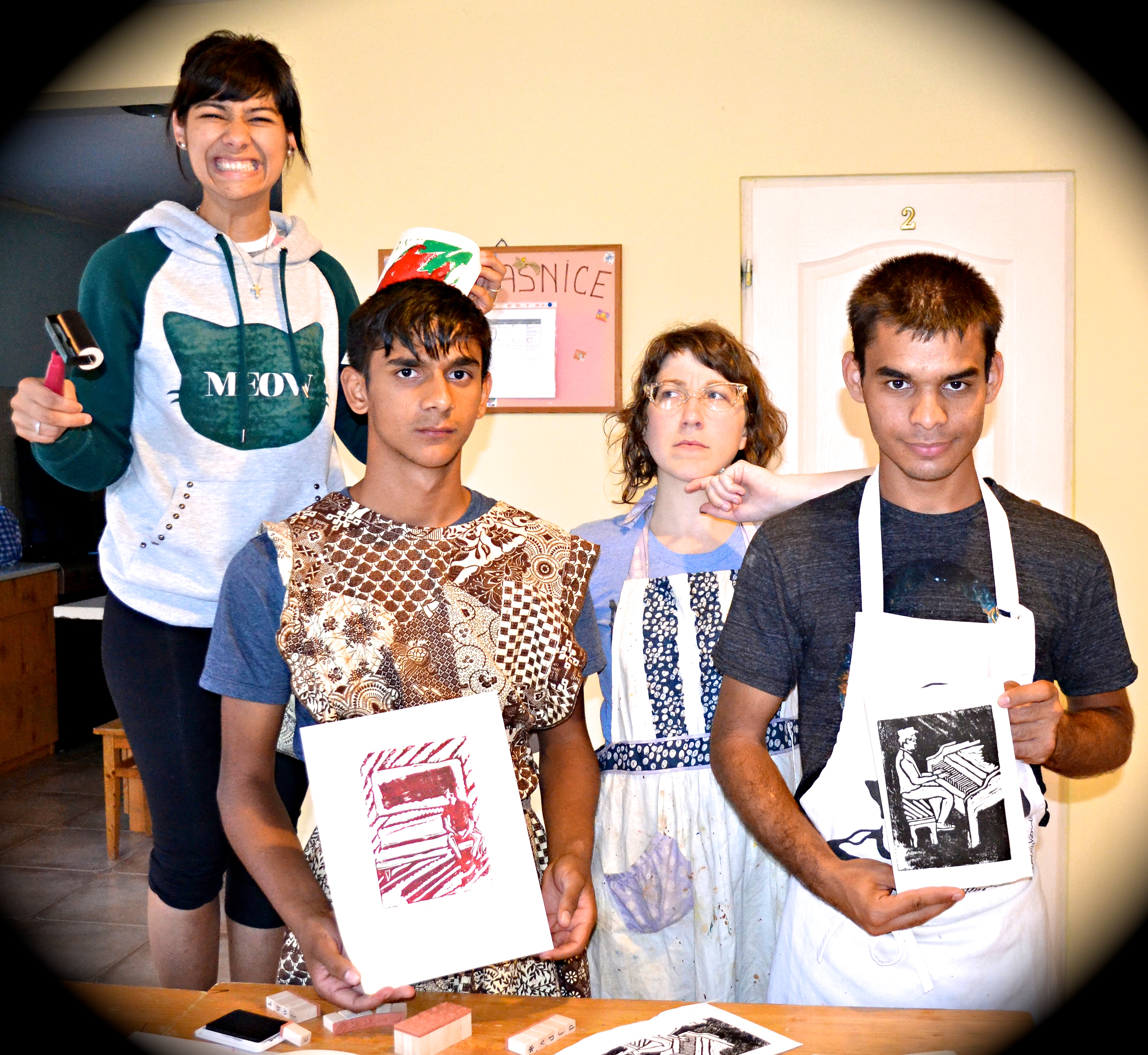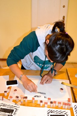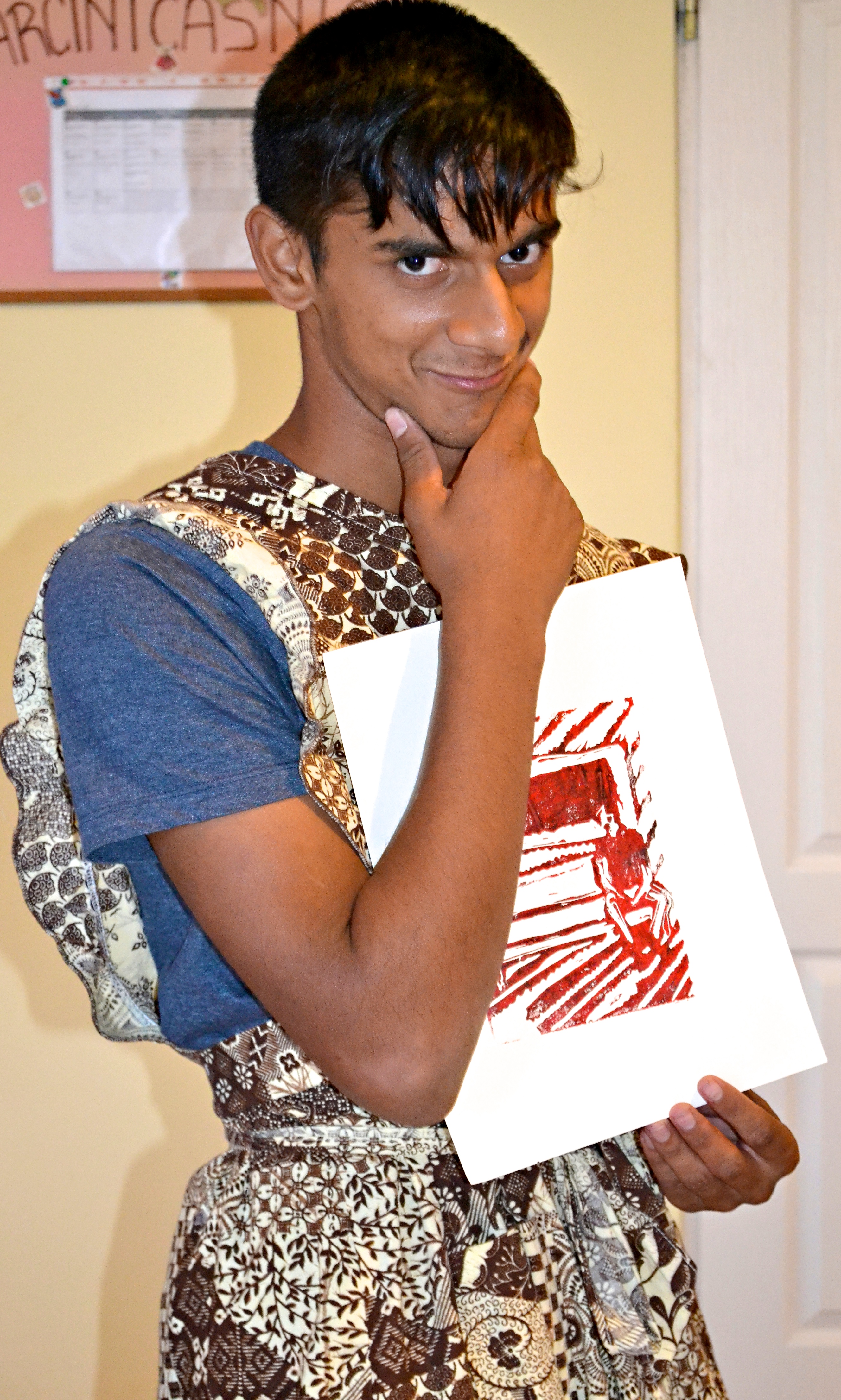 All pieces entered are 6×6 inches – hence the “6×6” title. I decided that prints would be the best way to go, so I tore some paper and mixed some ink (pewter, red, and white). I did test prints first to make sure the cropped images were strong compositions.