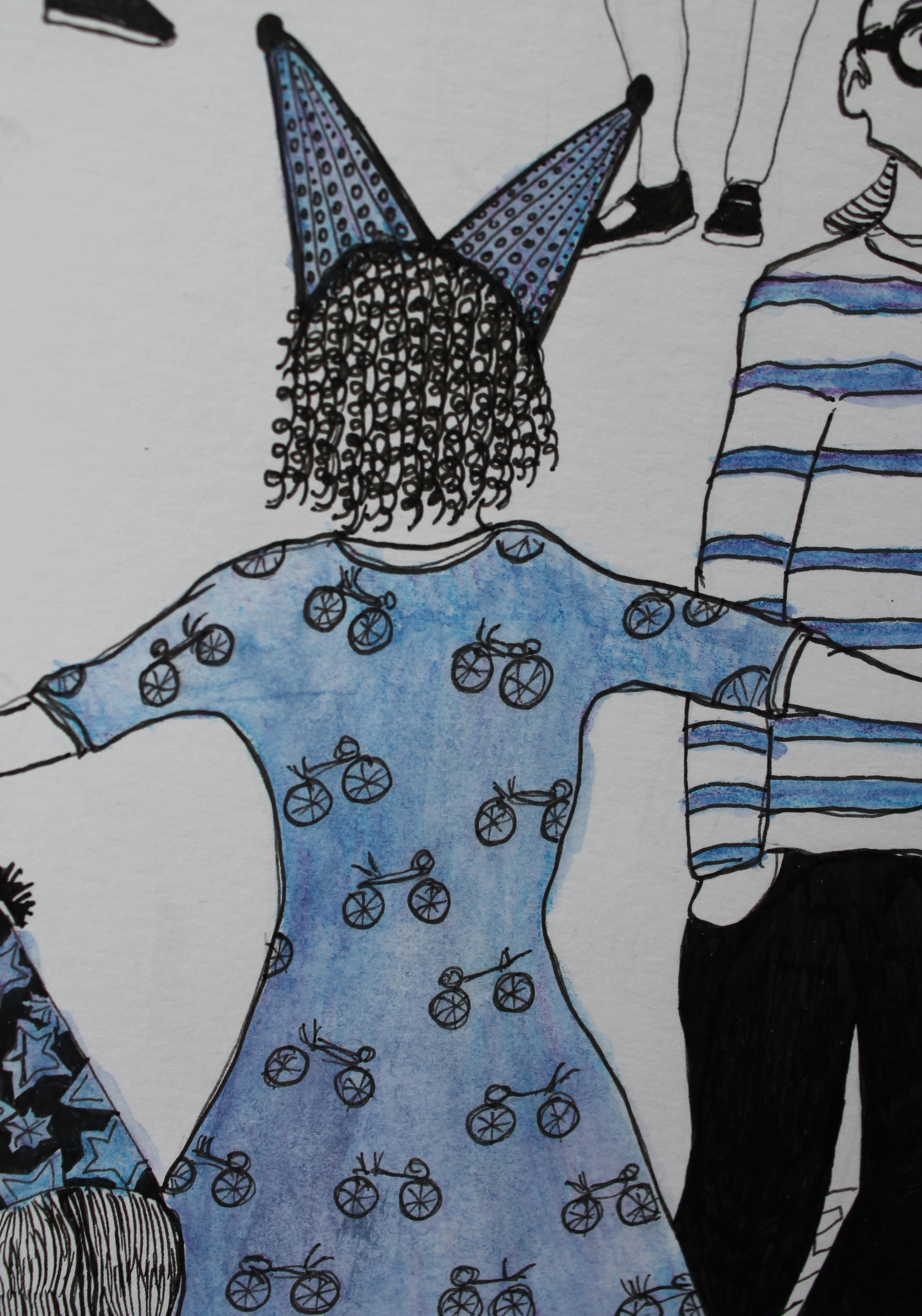I then printed out copies of the sketch and used inktense pencils to decide the color scheme for the mural.