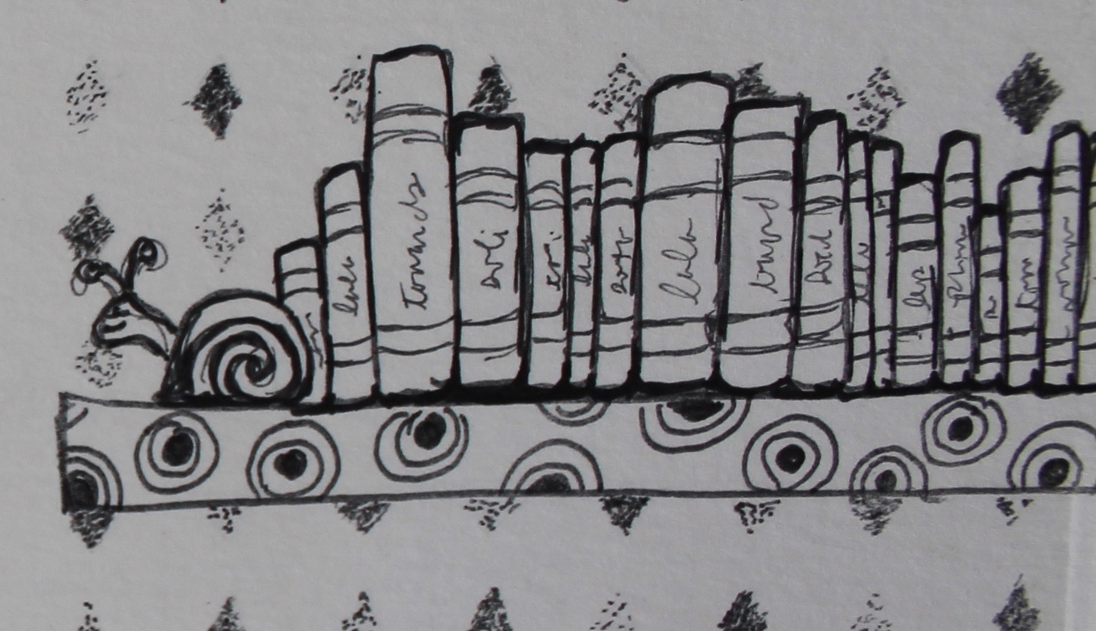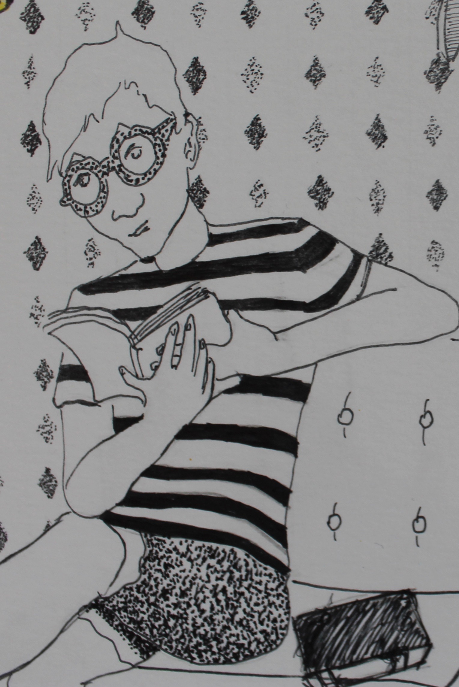 Innocently to Amuse the Imagination in this Dream of Life is Wisdom” was a bit of a puzzle for me because I wanted it to look very classic. There are a lot of writers referenced in this story, and at first I was thinking of making their portraits, but landed on their head busts instead to further accentuate the old wisdom in literature. I also had to ask my mom to send me the title in her fancy cursive. I think she liked helping on this one.