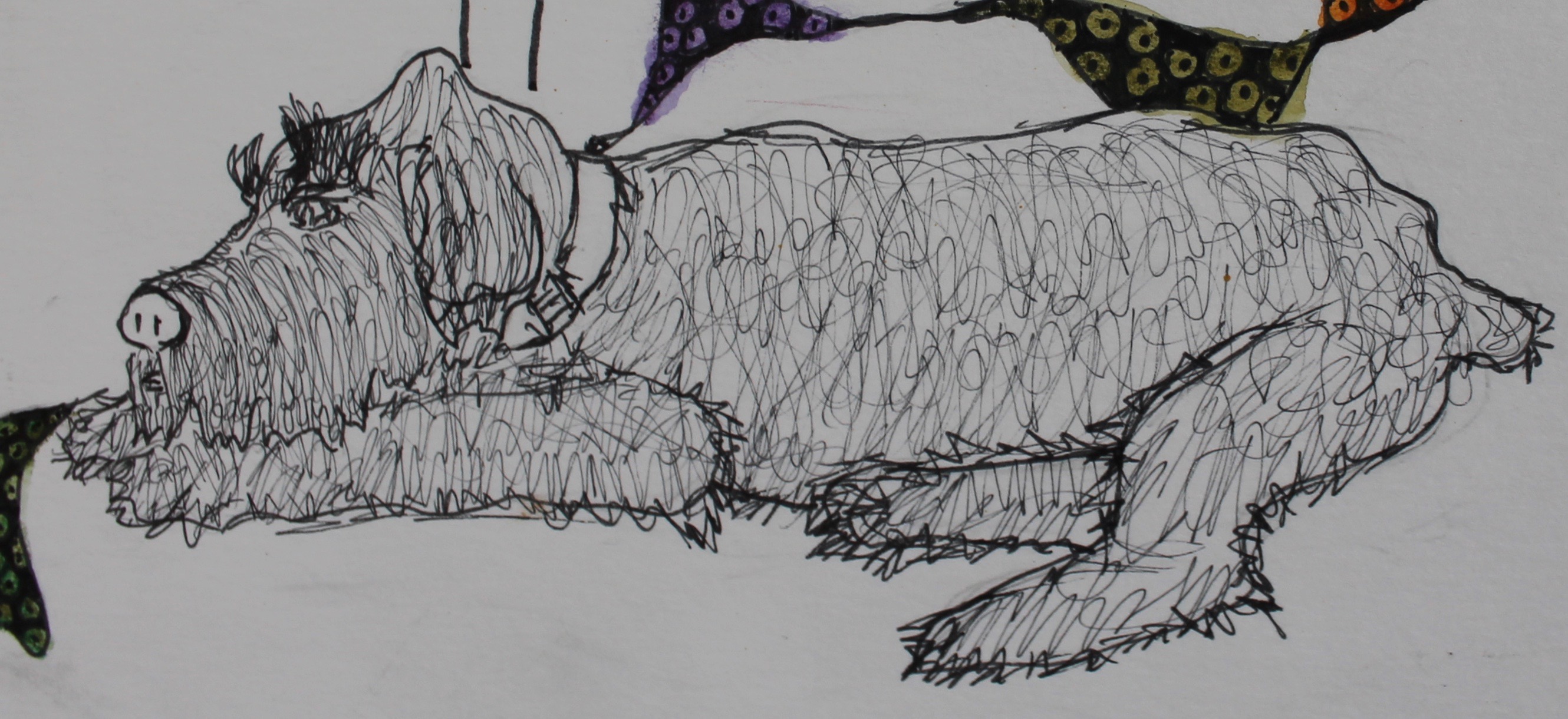 This work is narrative in content and uses color in a monochromatic way accentuating one part of each drawing. These fun and quirky illustrations are a reflection of the current joy and activities I have been experiencing.