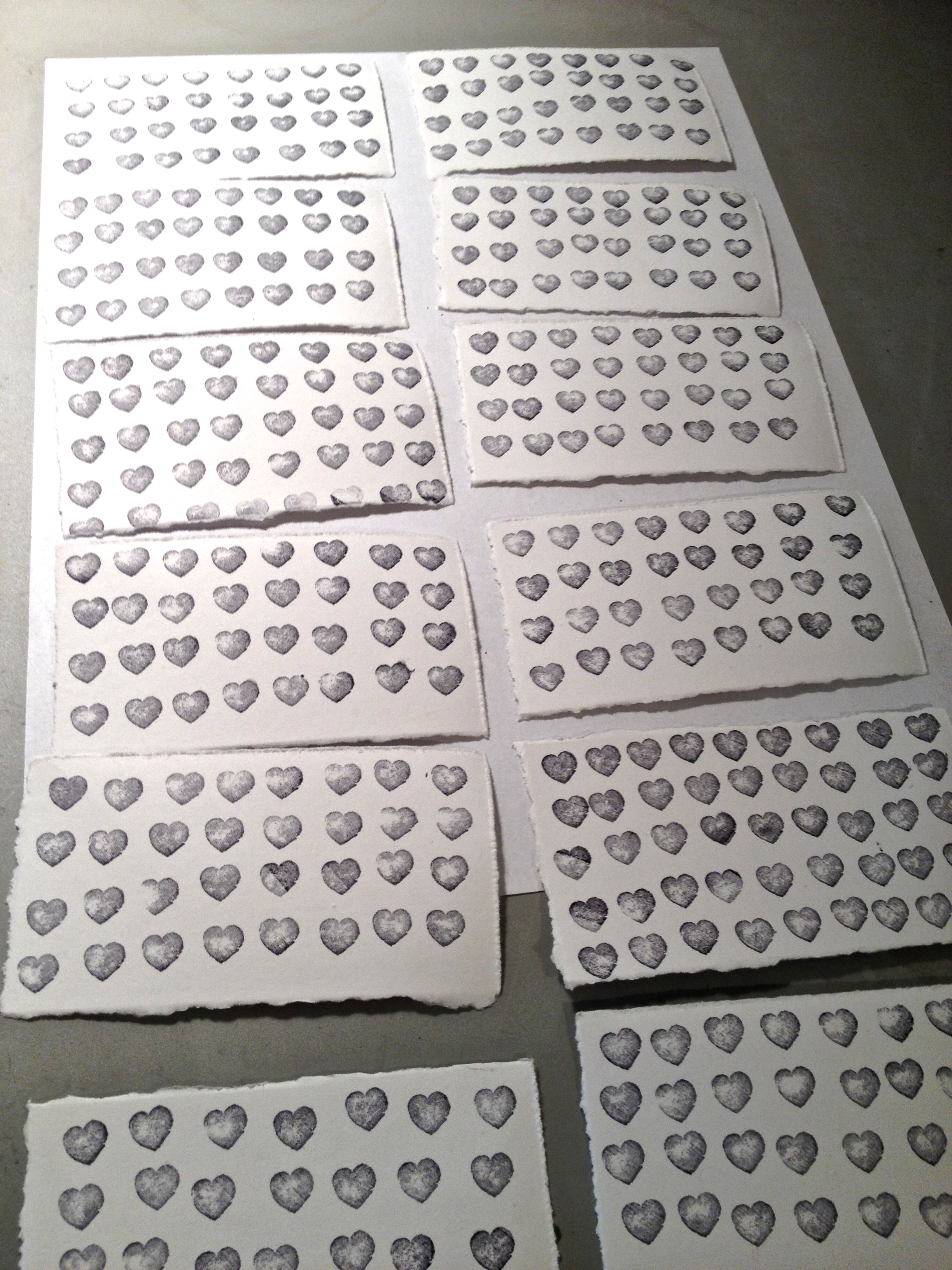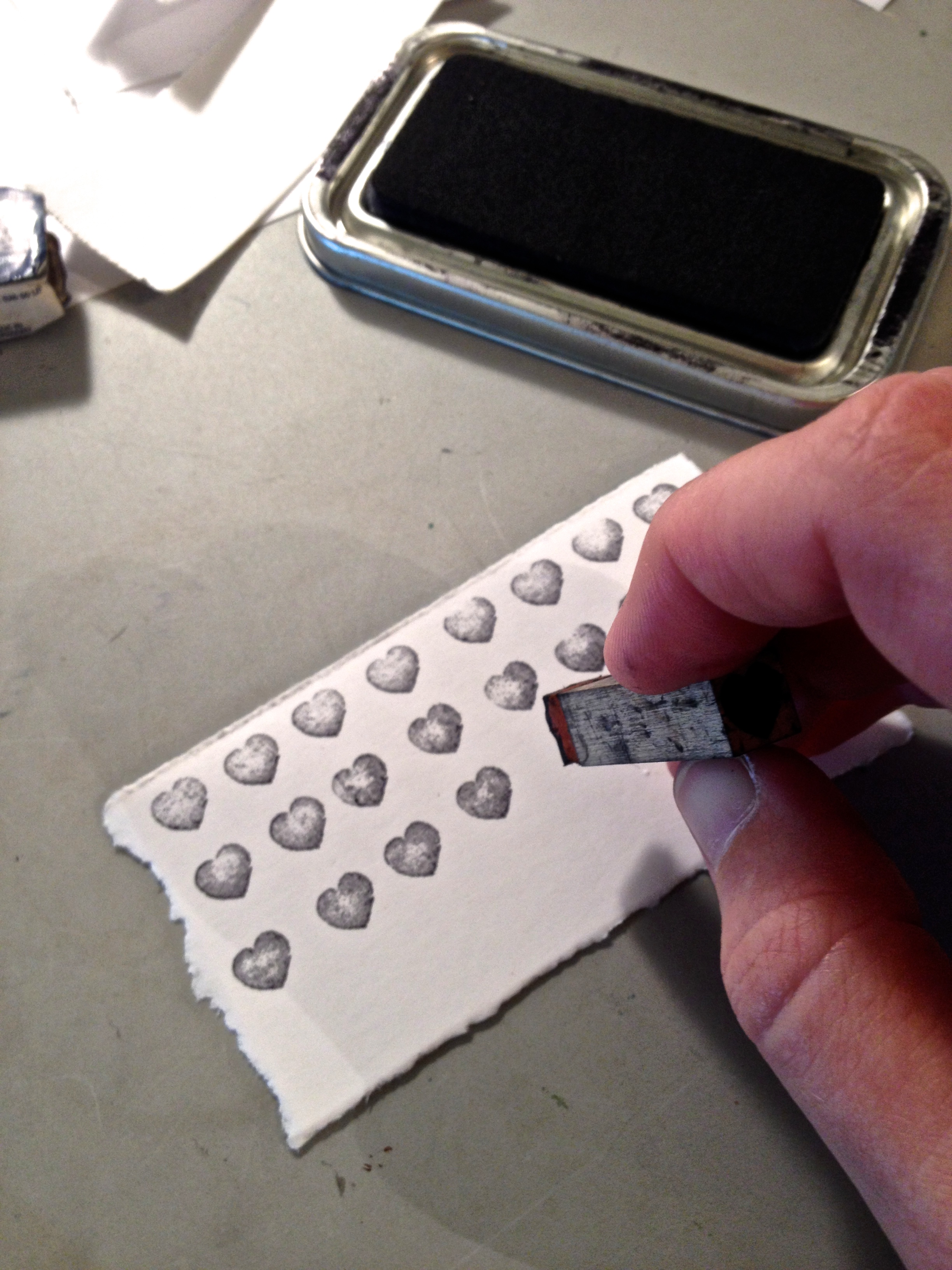 I hand stamped the backs of the cards using a small rubber heart stamp.