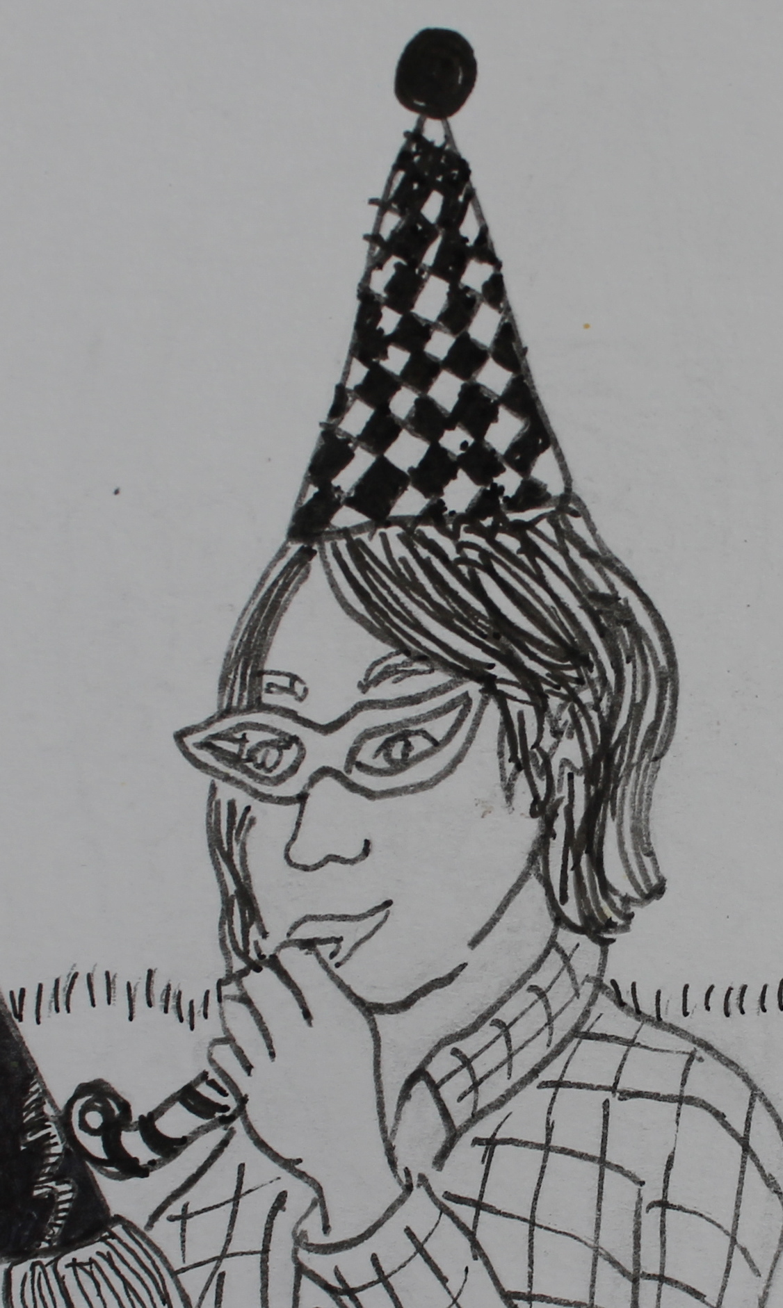 My favorite things about this drawing are the “Santa’s elf” photographer, Santa’s little log cabin set up, and my friend Stashia and her daughter Avi meeting Santa,