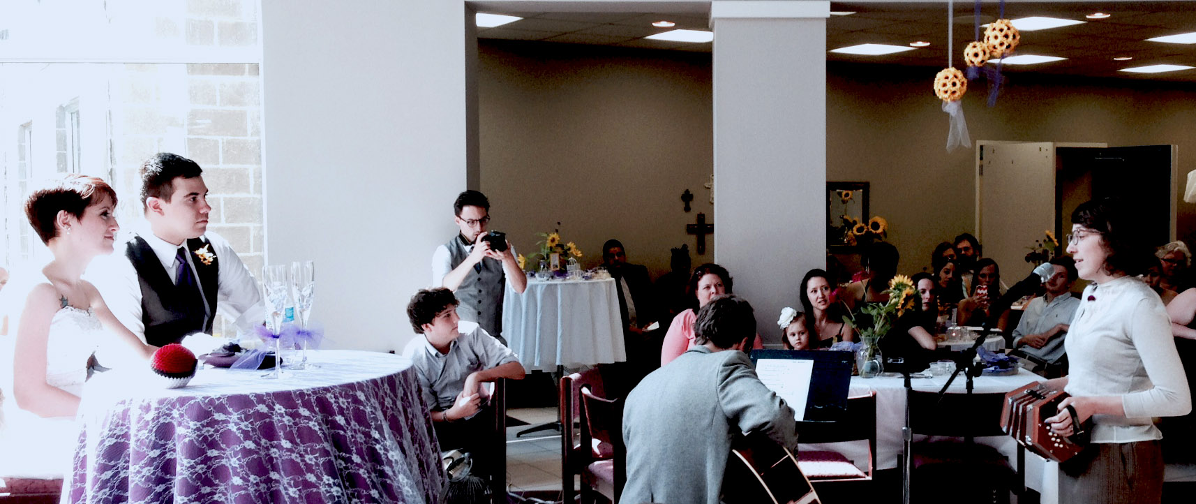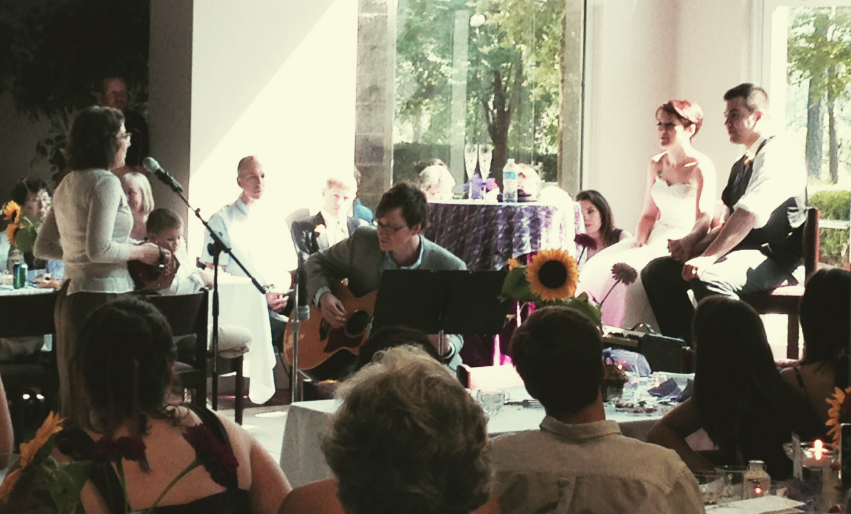 The Damsels in Distress were asked to play a song at the Lockehart wedding at Grace Church. M and I decided to play  “Mr. and Mrs.”, from album, “Spinning Plates.”