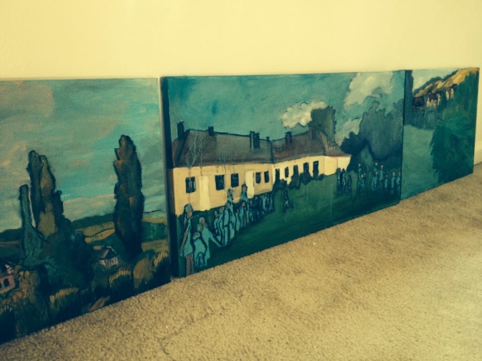 I have been working in my art studio on the Romania painting series for Livada orphan sponsorship. This one has been difficult to get through – emotionally. Though it feels amazing to be able to be what I think could be called an artist missionary, there has also been a lot of internal pressure on myself to make these paintings excellent. Also, I don’t know how much money they will raise for child sponsorship, and that makes me feel like “will this make a difference for the Livada orphans?” I am most likely over thinking it and psyching myself out – just need to paint!