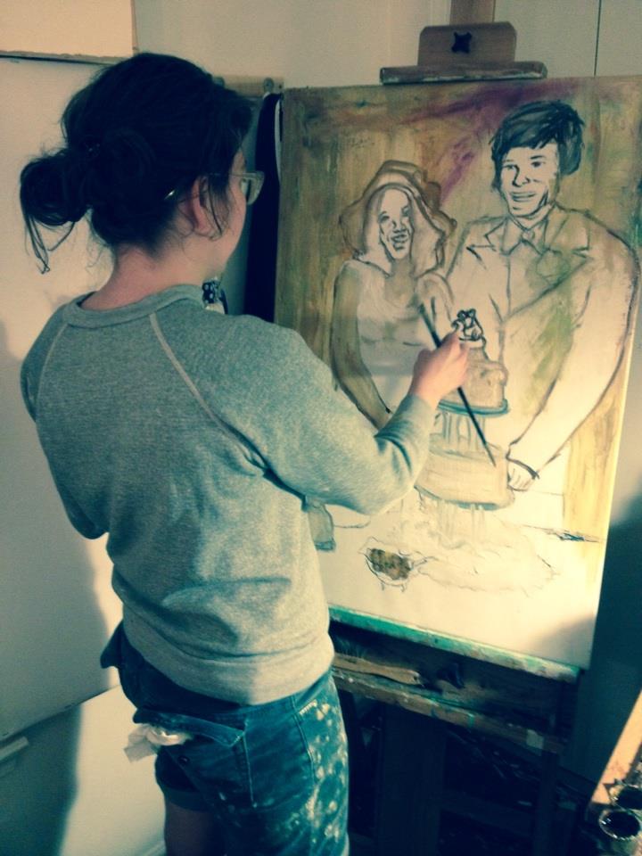 Once finished, M and I went to their house to deliver their anniversary painting.